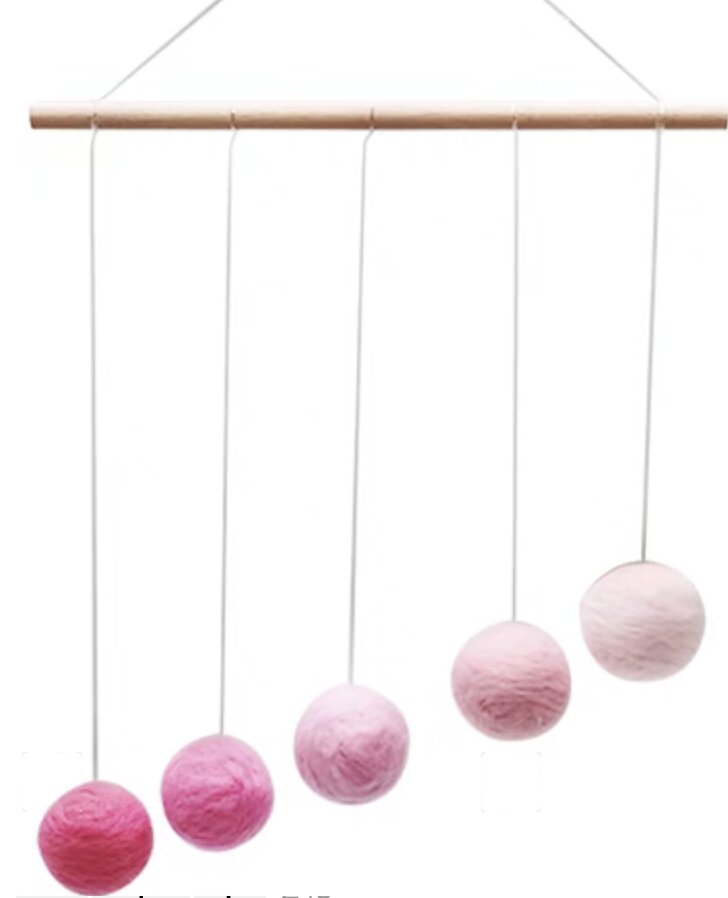 Vizualno usmerjen Montessori material za dojenčke, namenjen zgodnjemu razvoju vida in koncentracije. Pet kroglic v stopničastih odtenkih rdeče barve spodbuja razlikovanje barv, globinsko zaznavanje in dinamično sledenje s pogledom. Zasnovano kot naslednji korak po uvodnih mobilih.