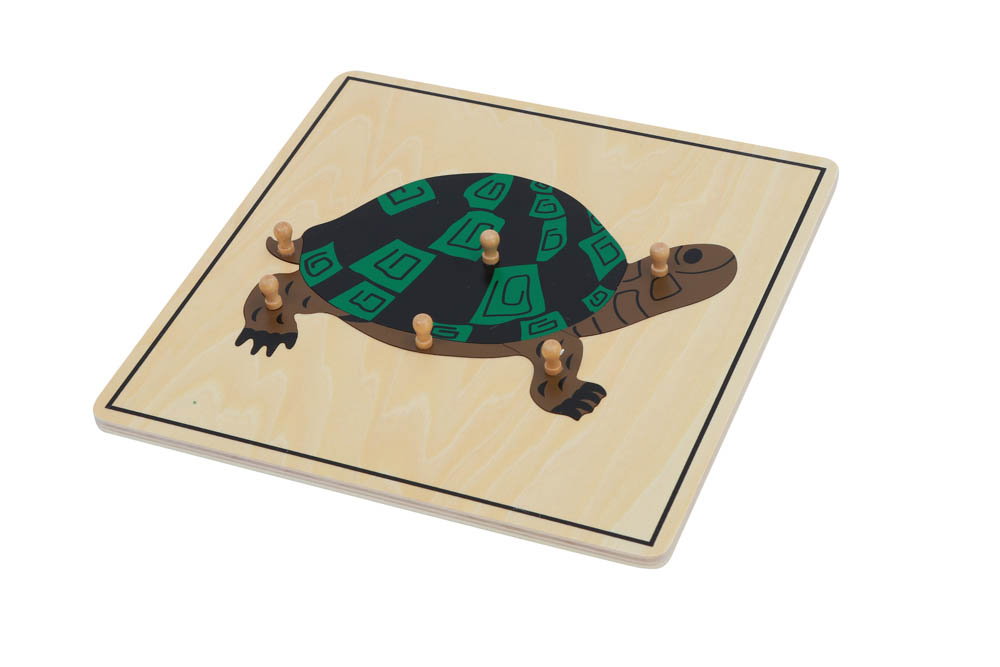 Sestavljanka živali. Sestavljanka želva (ozadje barva lesa).