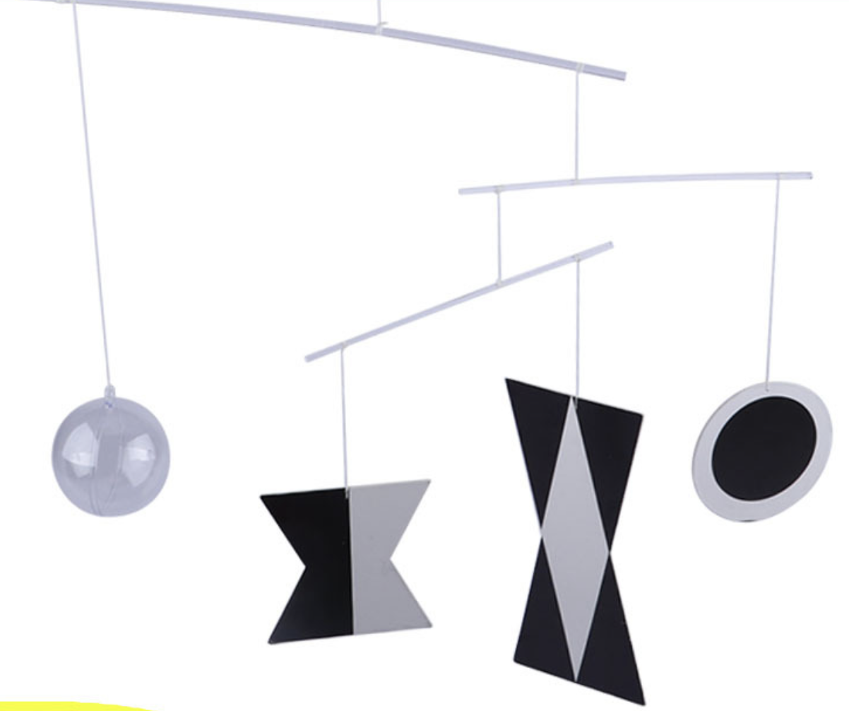Munari mobile je temeljni Montessori material za najzgodnejšo razvojno fazo dojenčka (0–6 tednov). Kontrastne črno-bele oblike v kombinaciji z naravnim lesom in kovinsko kroglico spodbujajo razvoj vida, osredotočenost in zaznavanje gibanja. Minimalistična zasnova podpira mirno okolje, otrok pa preko opazovanja gradi osnovo za koncentracijo in kognitivni razvoj. Idealna izbira za prvi stik dojenčka z Montessori okoljem.
