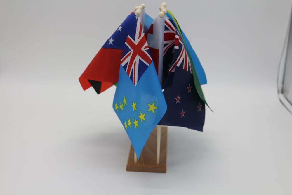 Zastave 15 avstralskih držav z Oceanijo z lesenim podstavkom.
